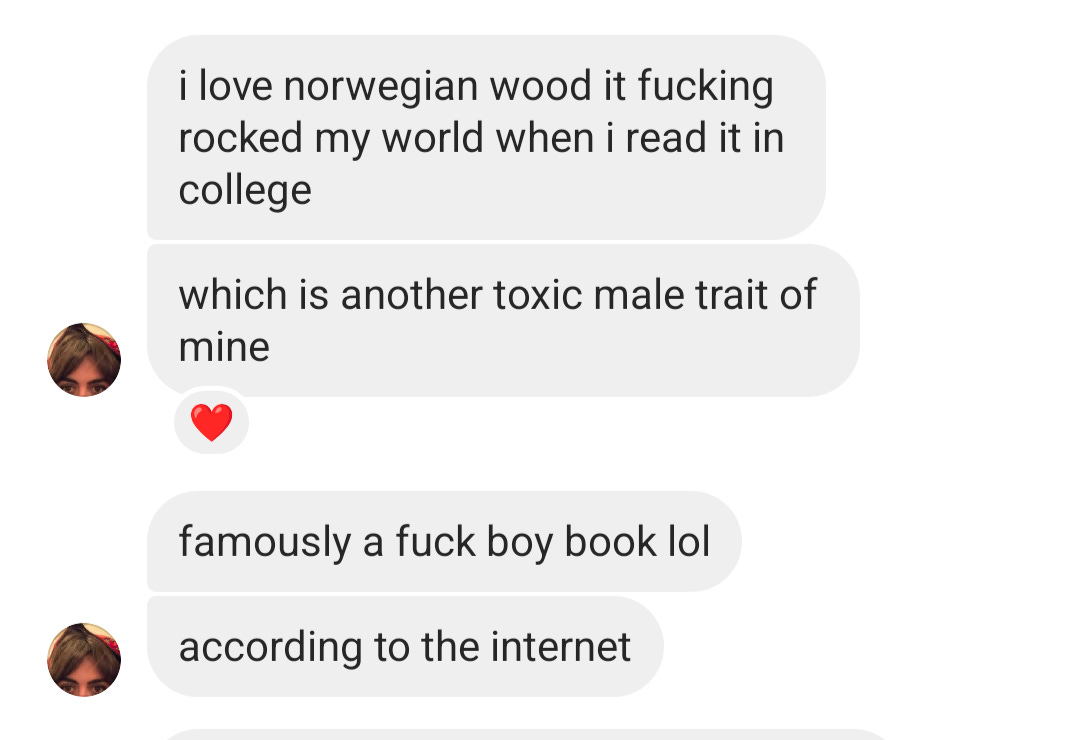 I read a lot of Really Good Fiction this summer, which turned out to be pivotal in helping me claw out of a brief but intense depression that struck like The Plague last June.5 Standouts include: Norwegian Wood (heartbreaking/horny), White Teeth (heartbreaking/lmao), All Fours (heartbreaking/lmao/horny), and Stoner (heartbreaking/heartbreaking).