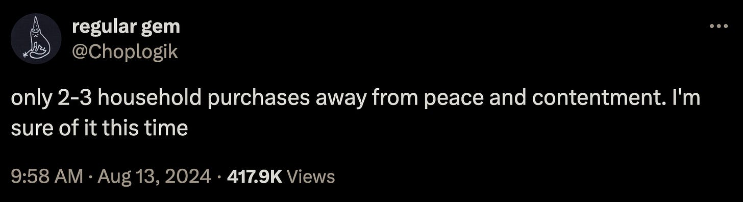 There are certainly good reasons to want more money beyond the simple drive for accumulation, especially in major cities, where housing affordability is extremely low. Still, I think it’s also safe to say that our expectations for what a “normal” level of consumption looks like have gotten thoroughly out of hand.